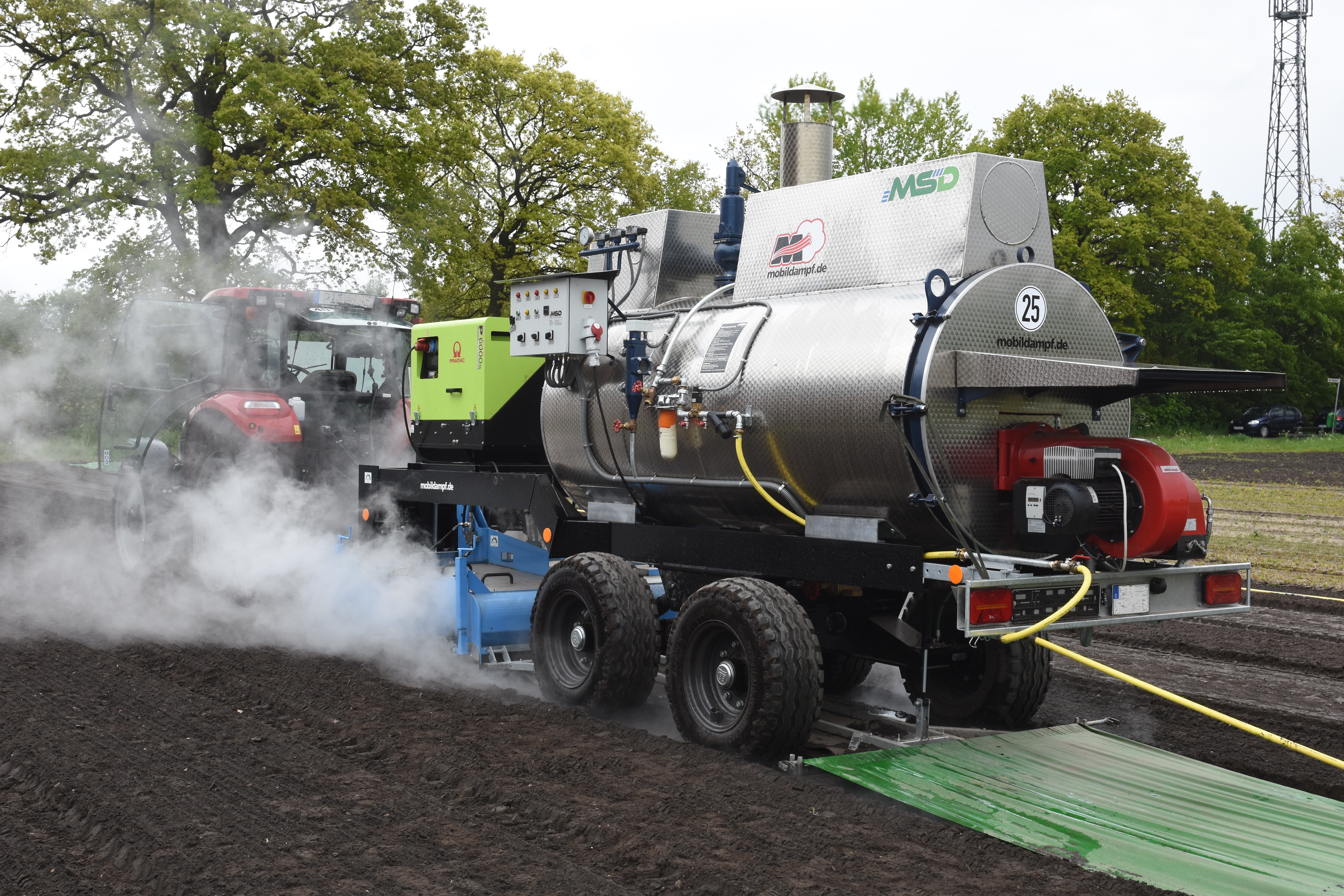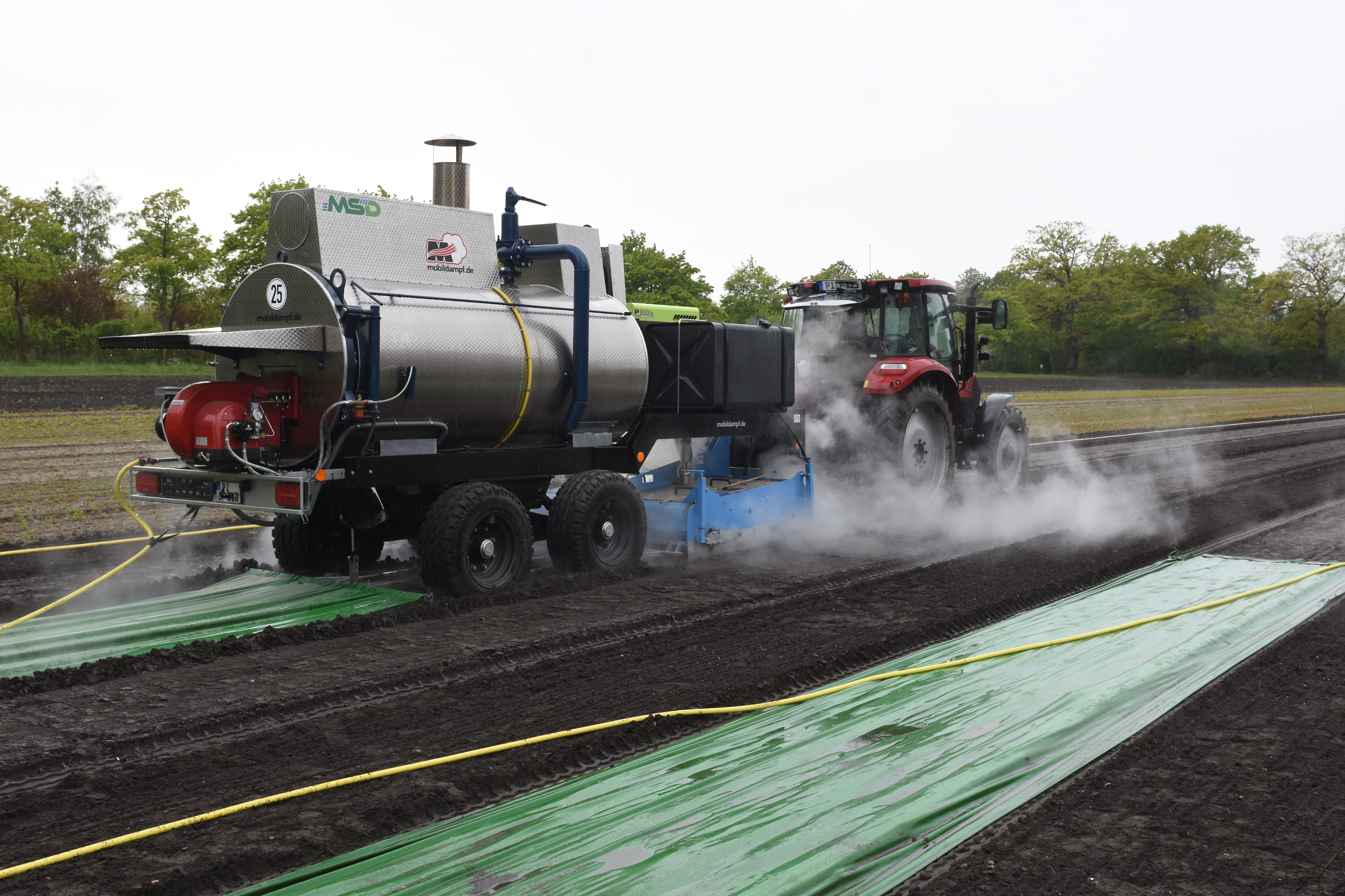 Mit dem Combimixer wird der Boden mit Wasserdampf desinfiziert, indem in dem Dampfkessel ca. 200°C heißer Wasserdampf erzeugt wird und in dem Mixer ein Unterschneidemesser mit integriertem Dampfinjektionsrohr den Wasserdampf in ca 10 bis 15 cm Tiefe in den Boden einbringt. Danach arbeitet eine hydraulisch angetriebene Egge die Erde und Dampf nochmals vermischt.