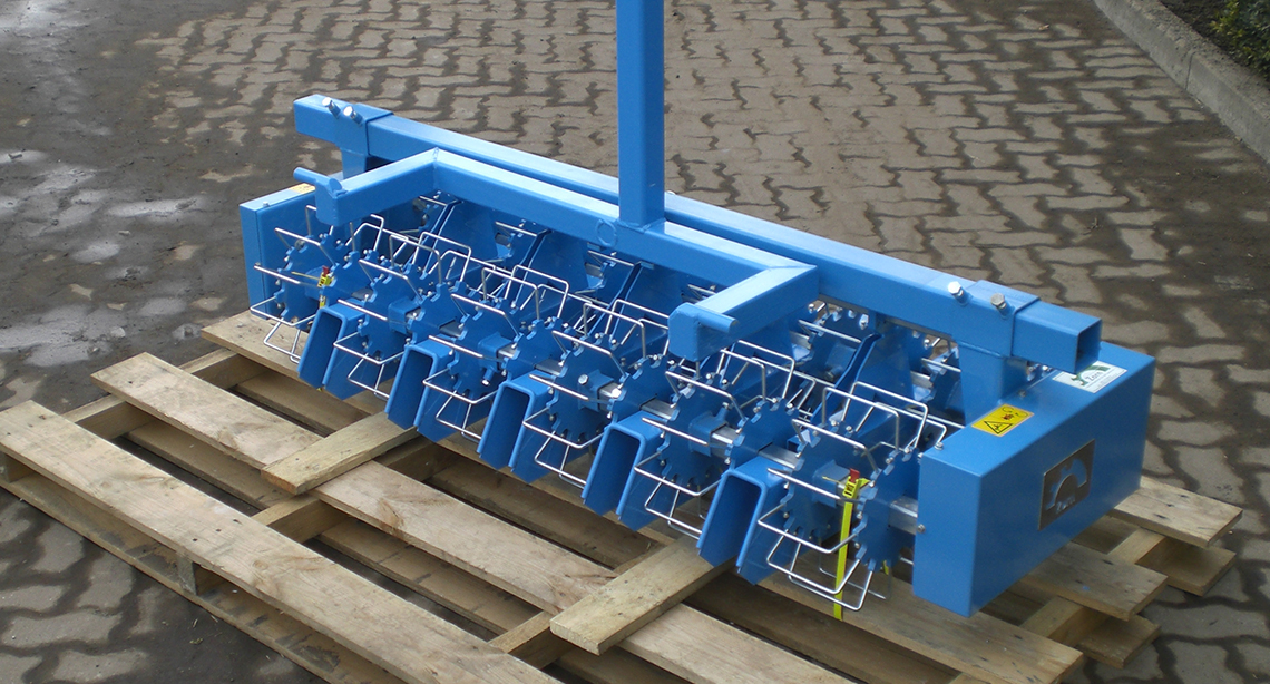 dass die Sämlinge nicht von Erde abgedeckt werden. Ideal für das Frühstadium der Sämlinge. Arbeitsbreite von 3 – 5 reihig. Anbau für Heck-, Front- und Zwischenachsanbau.