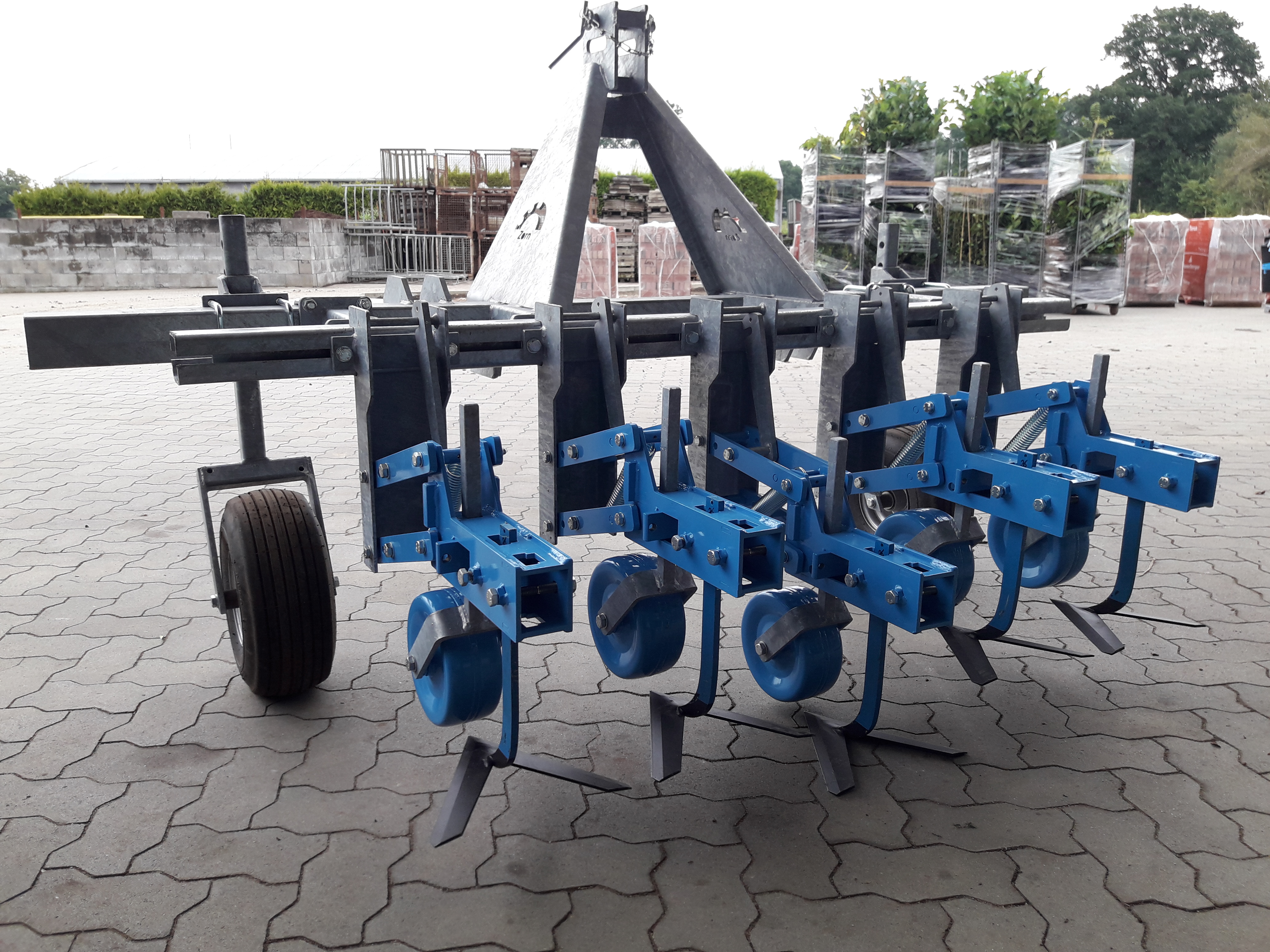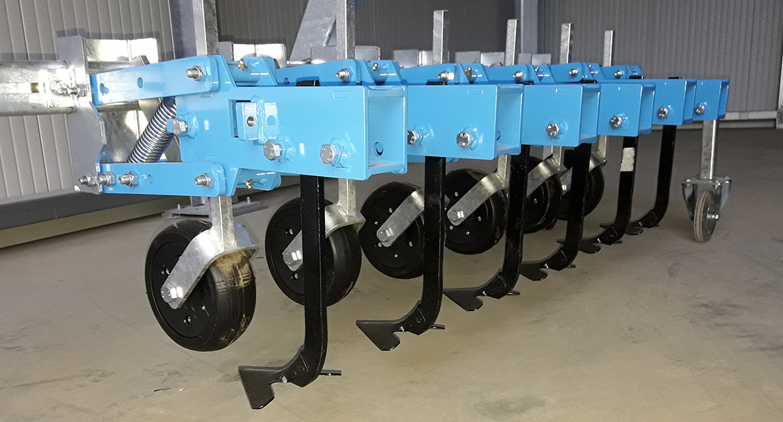 Hackgerät zur mechanischen Unkrautbekämpfung in Reihenkultur. Einzeln höhengeführte Aggregate mit Befestigungsmöglichkeiten für verschiedenen Schare.