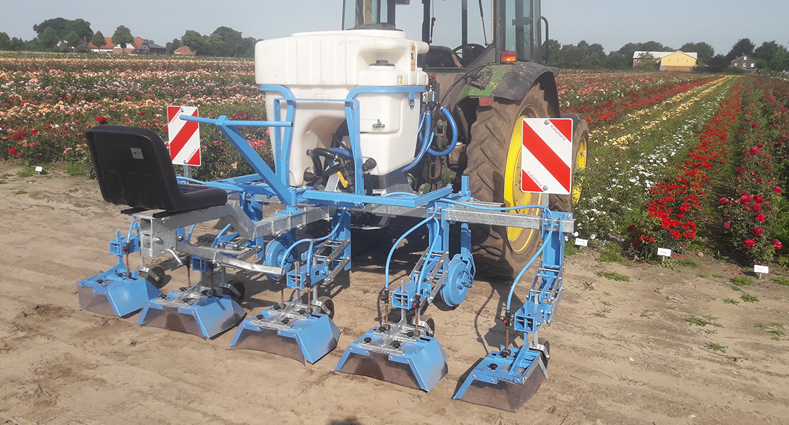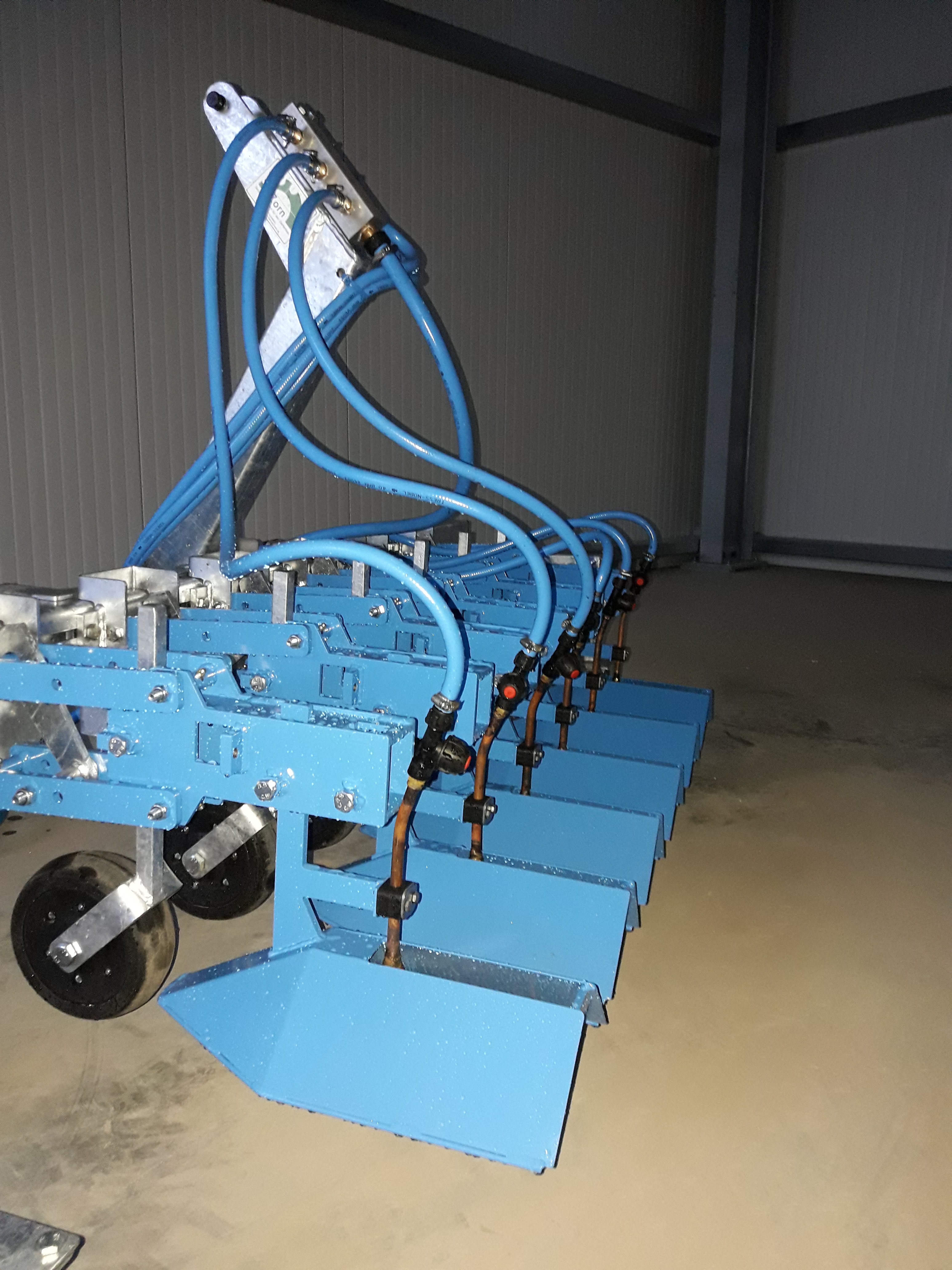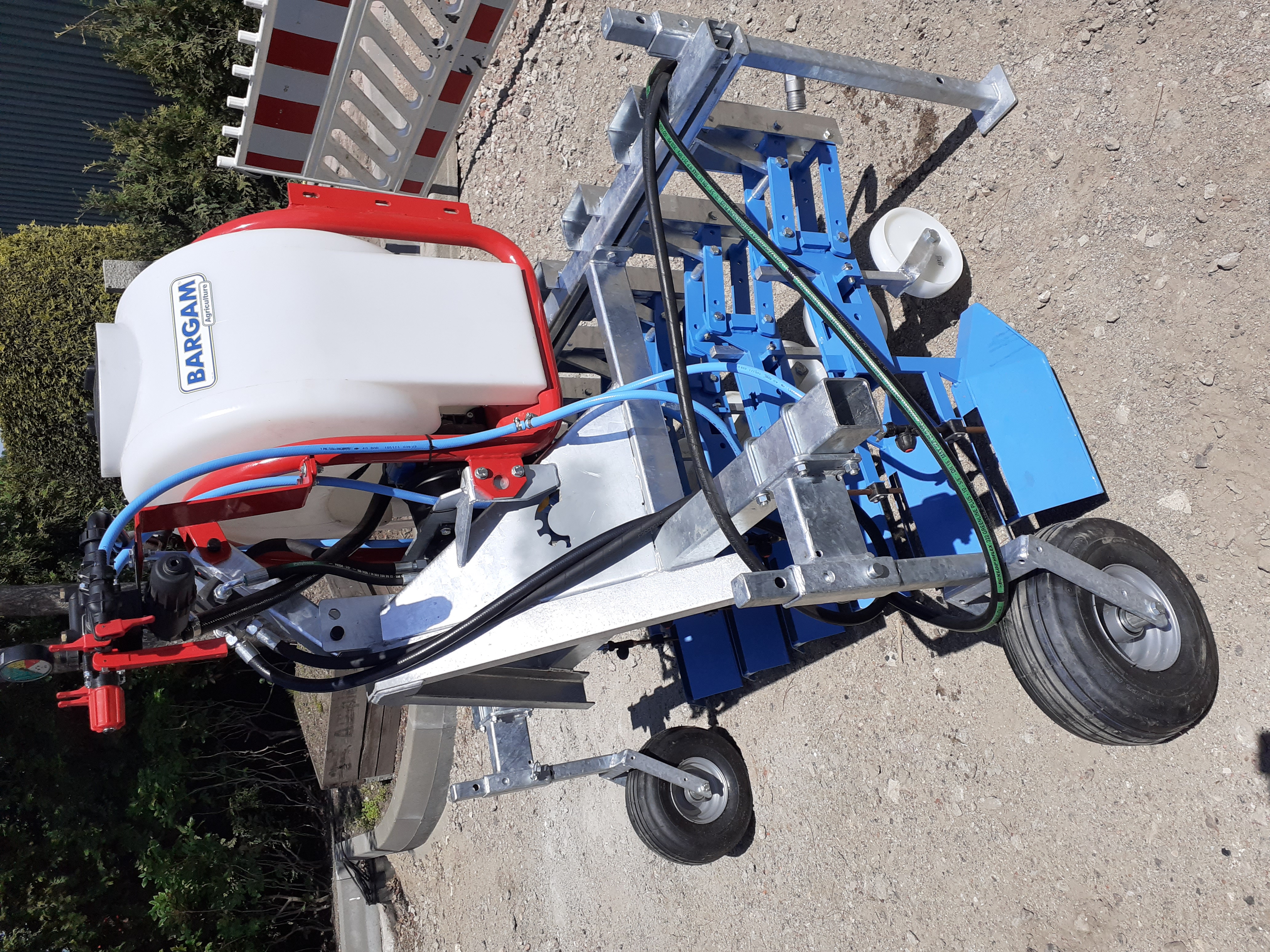 Unterblattspritze mit parallel geführten Spritzschirmen. Von 2 bis 5 reihig möglich. Anbau für Heck-, Front- und Zwischenachsanbau.